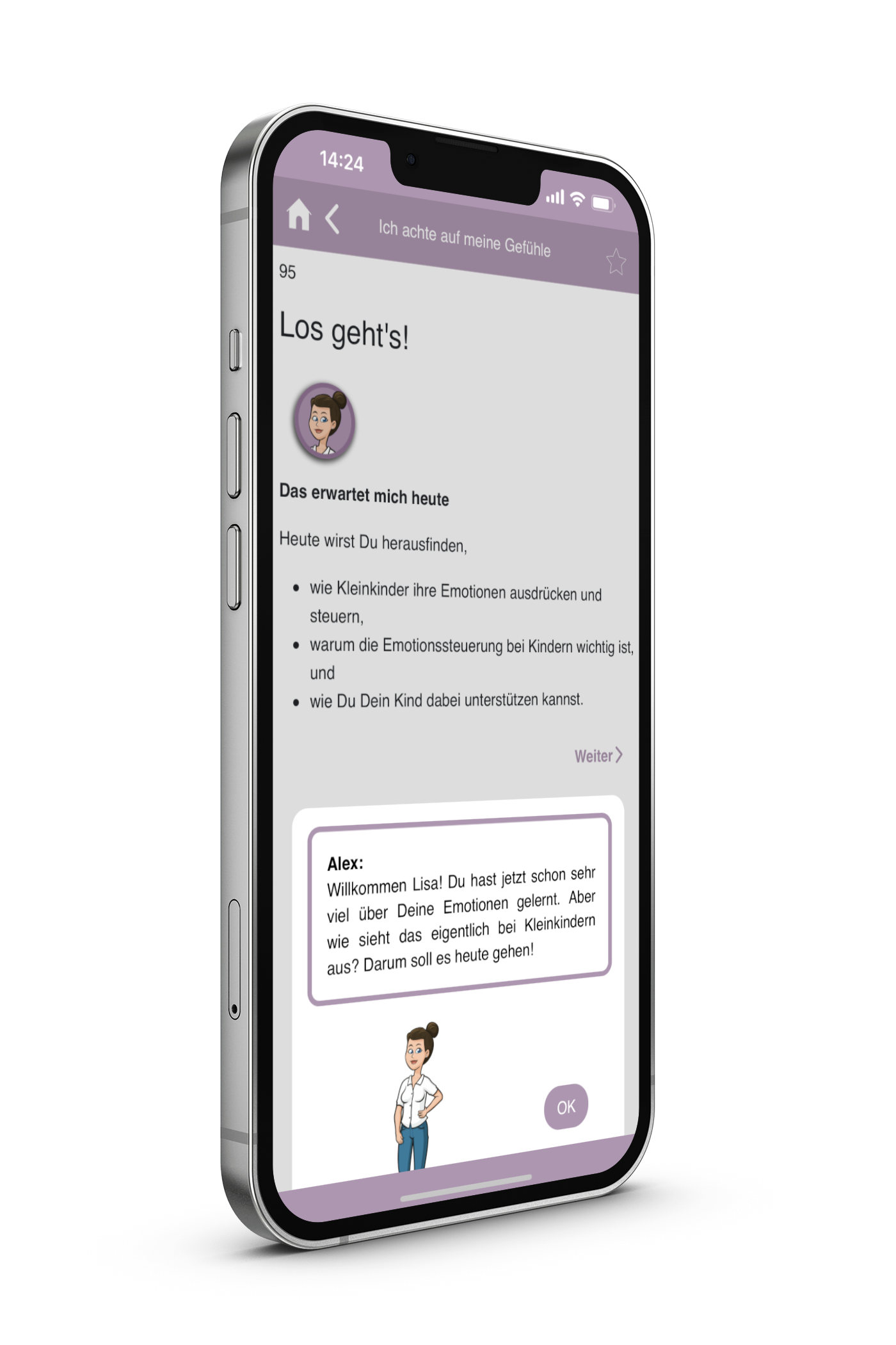 Zum Einsatz kommen soll die App in den Familien gemeinsam mit der Postpartum Betreuung durch Fachkräfte in der gesundheitsorientierten Familienbegleitung des Nationalen Zentrum Frühe Hilfen. Für die Forschungsstudie werden deshalb in Zusammenarbeit mit den koordinierenden Kinderschutzstellen Bayerns (KoKi) und deren Fachkräfte psychosozial belastete Familien ausgesucht, um diese durch die Kombination aus Fachwissen, Beratung und konkreten Handlungsstrategien mit I-PREGNO in ihrem neuen Alltag zu unterstützen. Um die App möglichst gut an die Bedürfnisse der Eltern anzupassen, führte der Projektpartner der Uni Bamberg, das Deutsche Jugendinstitut in München, Fokusgruppen durch und befragte Fachkräfte und Familien zu den Erwartungen und Anforderungen an solch eine Anwendung. Im Vordergrund dabei standen vor allem vertrauenswürdige Inhalte, eine intuitive Bedienbarkeit und die selbstbestimmte Informationsgewinnung. „Eine der Herausforderungen lag besonders in der Aufbereitung der Inhalte für die Zielgruppe. Je nach Thema und Umfang der Informationen haben wir ein passendes Format gesucht, sodass manche Inhalte als interaktive Übung, interessanter Artikel oder informative Audiodatei vermittelt werden.“, erklärt wissenschaftliche Mitarbeiterin Caroline Seiferth das Vorgehen.